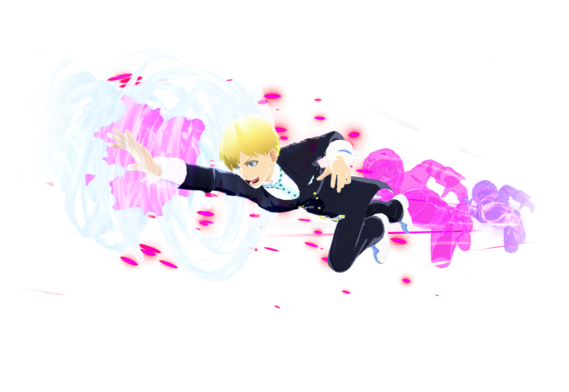 ![]() Usa il Quirk di Itsuka Kendo per ingigantire le mani e scagliare un'onda d'urto. Copia la tecnica Quirk α dell'avversario colpito. |